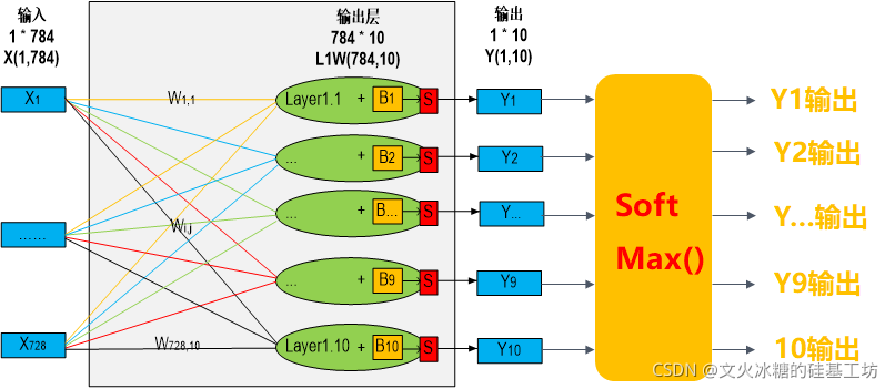- 有可能会出现:同一个输入数据,有可能有多个接近1的sigmoid输出结果。输入9的手写数字图片,标签为9的那一路神经元的输出为0.9, 标签为6的那一路神经元的输出为0.7, 标签为7的那一路神经元的输出为0.6, 由于每一路是相互独立的,因此多个sigmoid的输出值的累加和,确实有可能大于1.