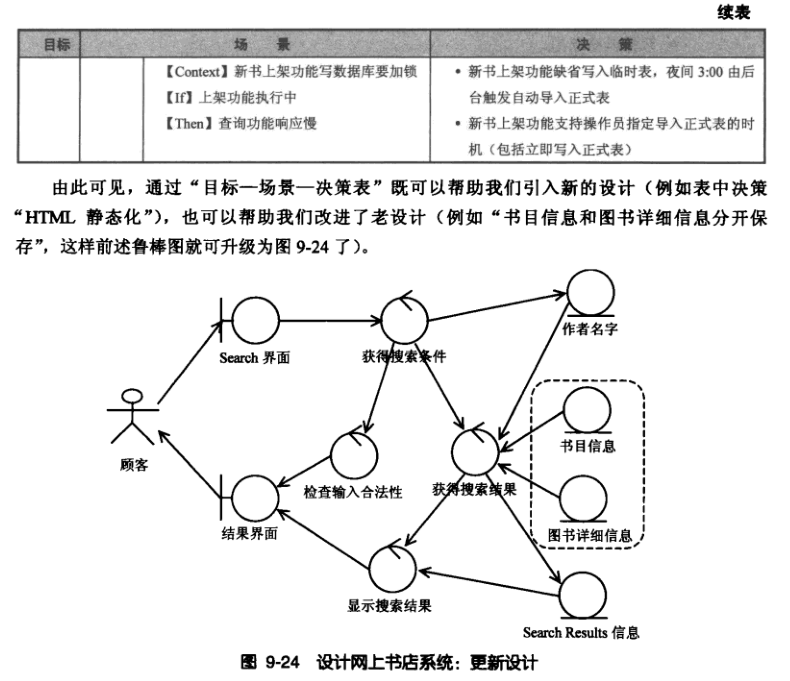 质量需求并不是以用例的形式展现的,而是以条文的形式展现的。因此,鲁棒图无法实现纯粹的质量需求到架构设计的转换!!!这就需要一种新的方法,把质量需求和约束条件的需求,转换成架构设计的决策和架构设计要考虑的因素!!!这种方法就是目标、场景、决策表格!!!