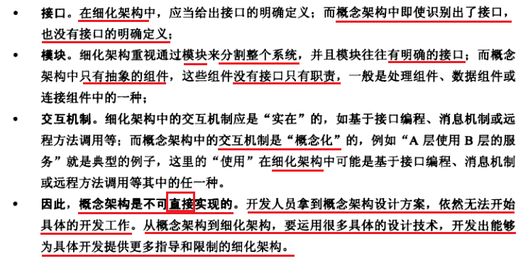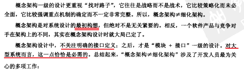概念架构设计能够获得顶级的概念性组件模型,但没有想象的接口定义和细化的组件。