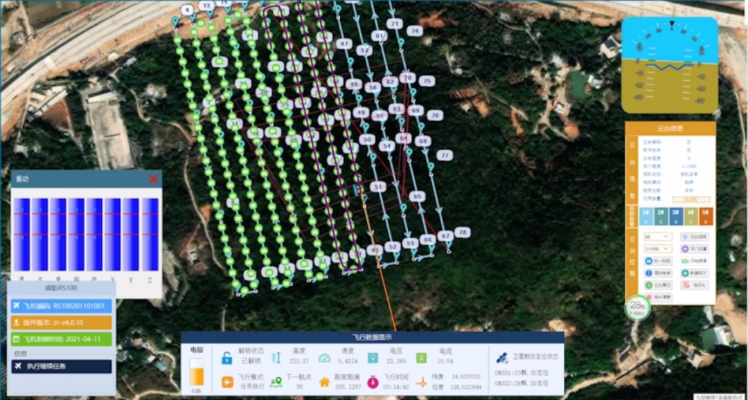 •三维采集模块相机像素≥4200万像素,传感器尺寸≥35.9x24.0mm,焦距≤18mm,具有2轴增稳结构,内置独立IMU进行姿态测算,支持正射和扫摆两种作业模式