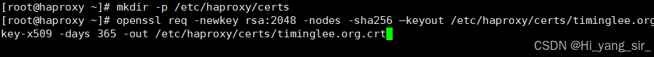[root@haproxy ~]# openssl req -newkey rsa:2048 -nodes -sha256 ?keyout /etc/haproxy/certs/timinglee.org.key-x509 -days 365 -out /etc/haproxy/certs/timinglee.org.cr