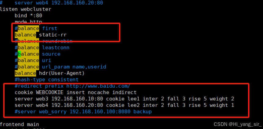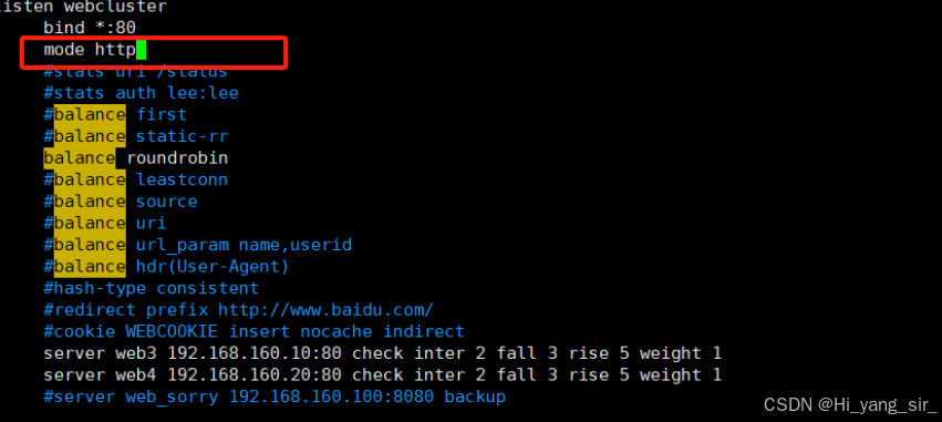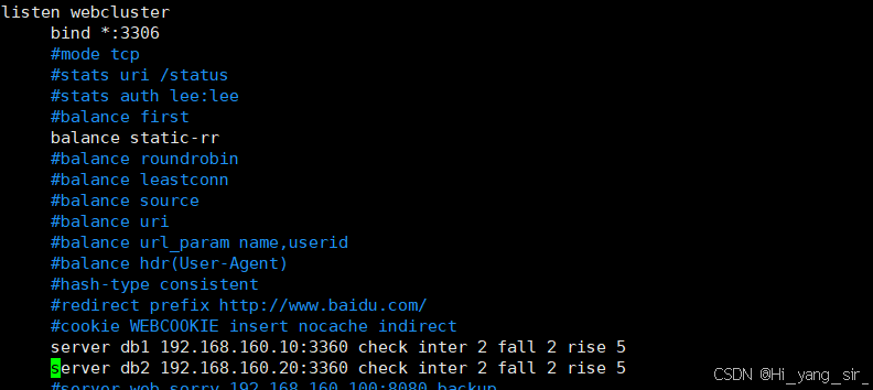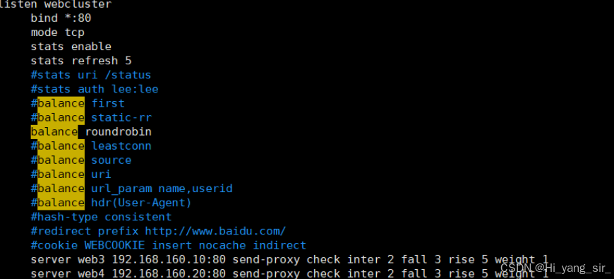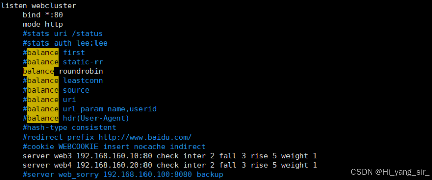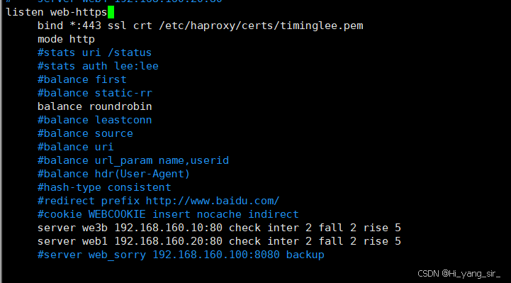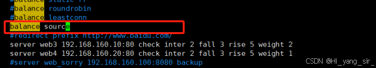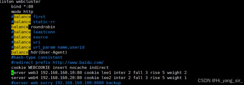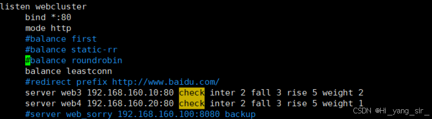 server web4 192.168.160.20:80 cookie lee2 check inter 2 fall 3 rise 5 weight 1