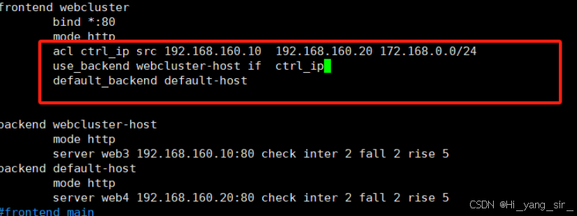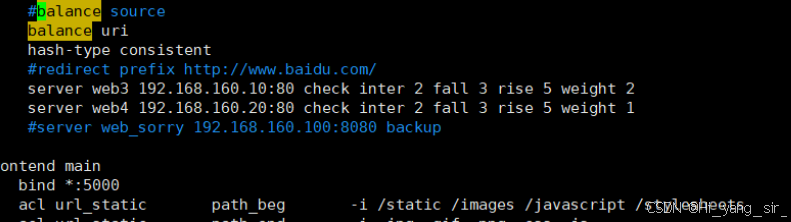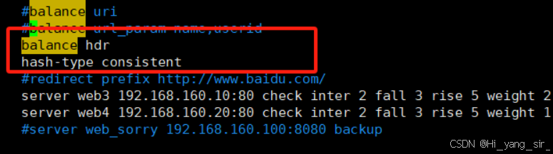 server web3 192.168.160.10:80 cookie lee1 check inter 2 fall 3 rise 5 weight 1