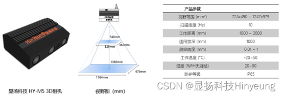 3、精度高:显扬科技的3D视觉设备HY-M5的成像精度高达0.1mm,可高精度测量,判断缺陷检测信息正确率高达99%,实现高精度抓取识别;