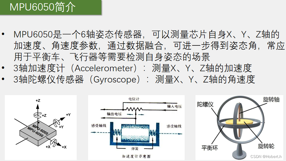 32MPU6050&姿态解算 运动检测有高通滤波器可以滤除重力造成的稳定数据偏置,当加速度计静置时,消除那一个g的重力加速度。MEMS说公司研发的微机电系统,可以用电子的方案进行姿态测量。时钟源:内部晶振,陀螺仪晶振和外部时钟引脚的方波。芯片内部含有自由落体检测,运动检测和零运动检测。MPU6050无SPI相关电路。