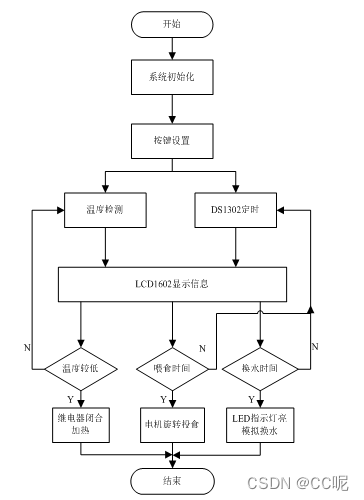 产品开始工作后默认进入自动模式,DS18B20控制温度检测模块,对智能鱼缸的温度进行实时监测,若当前温度低于设定温度,........................