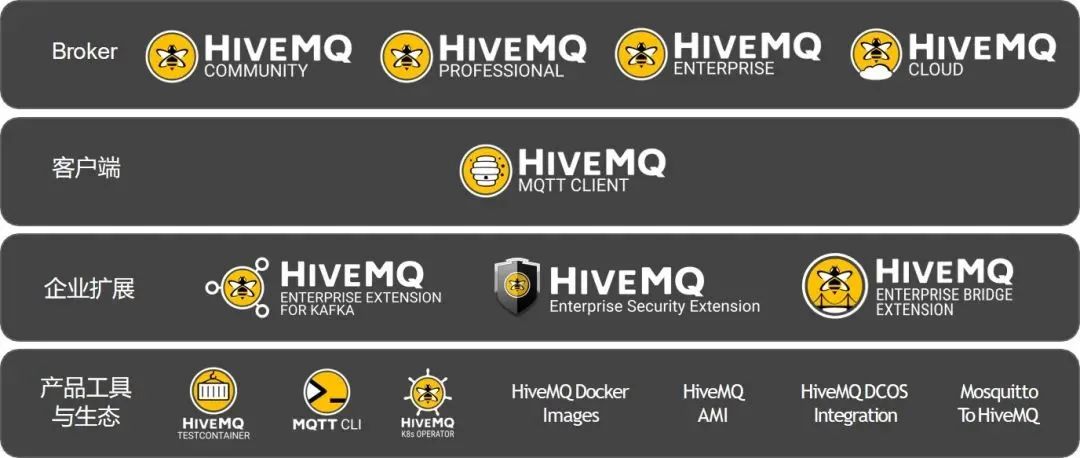 虹科HiveMQ 提供免费版、专业版、企业版 MQTT Broker 产品,并提供 Kafka、企业安全及 MQTT Broker 桥接三种企业级扩展套件,HiveMQ 还提供高效的 MQTT 客户端及云平台,多方位满足用户需求。
