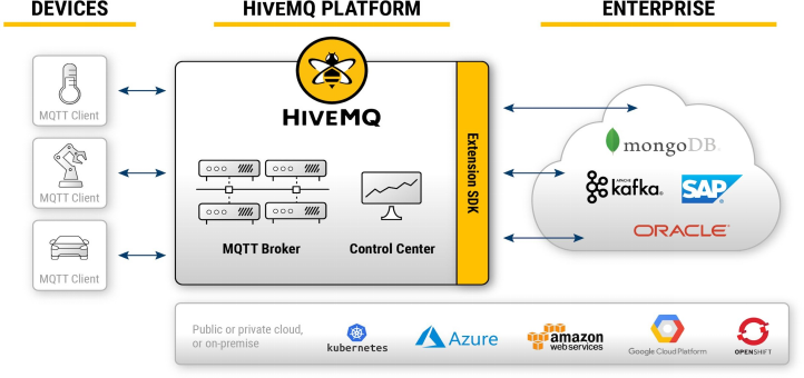 虹科HiveMQ 是一个基于 MQTT 数据传输的通信平台,旨在将数据快速、高效、可靠地传递给连接的物联网设备,HiveMQ 使用 MQTT 协议在设备和企业平台之间进行实时、双向的数据推送。