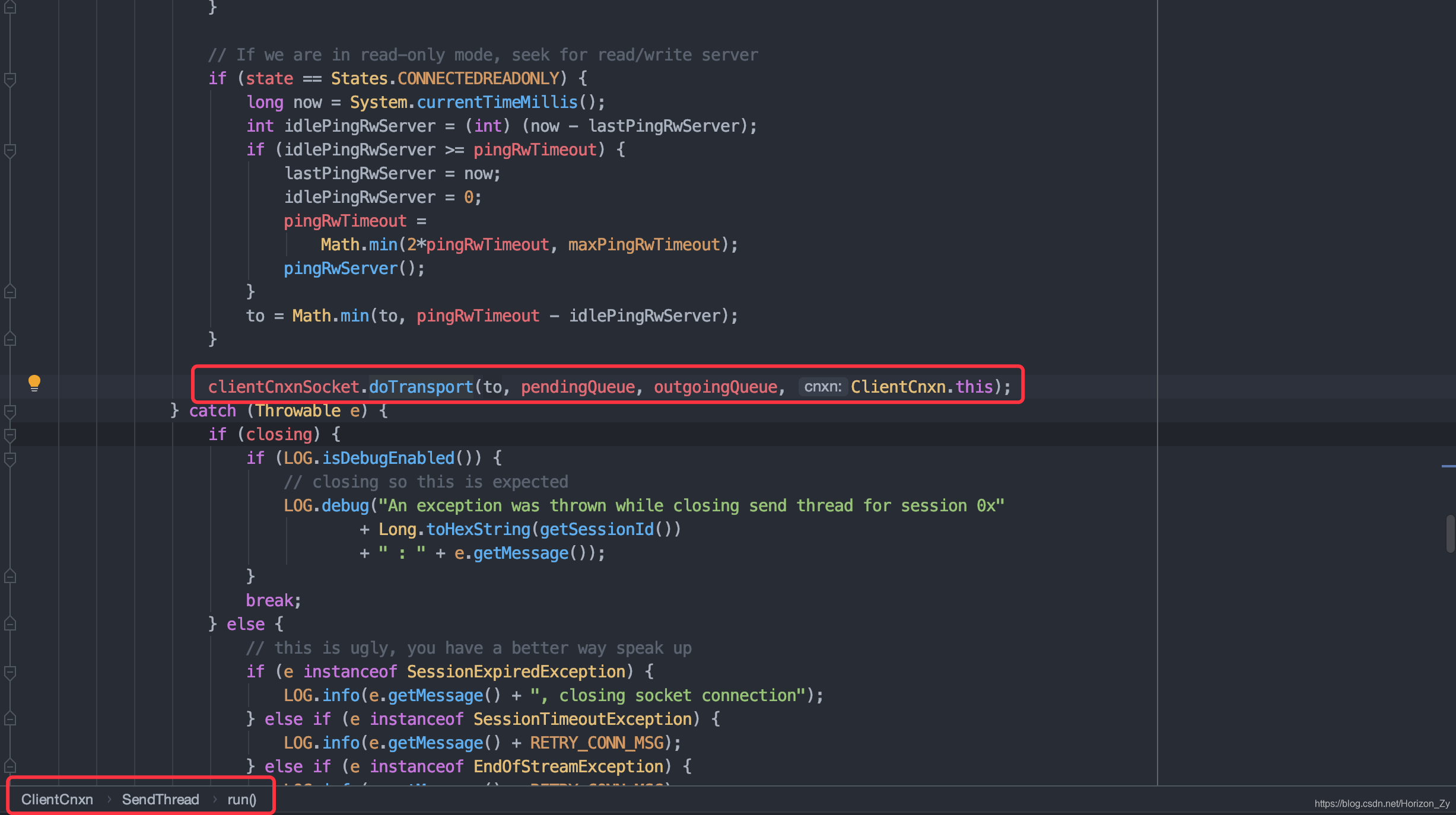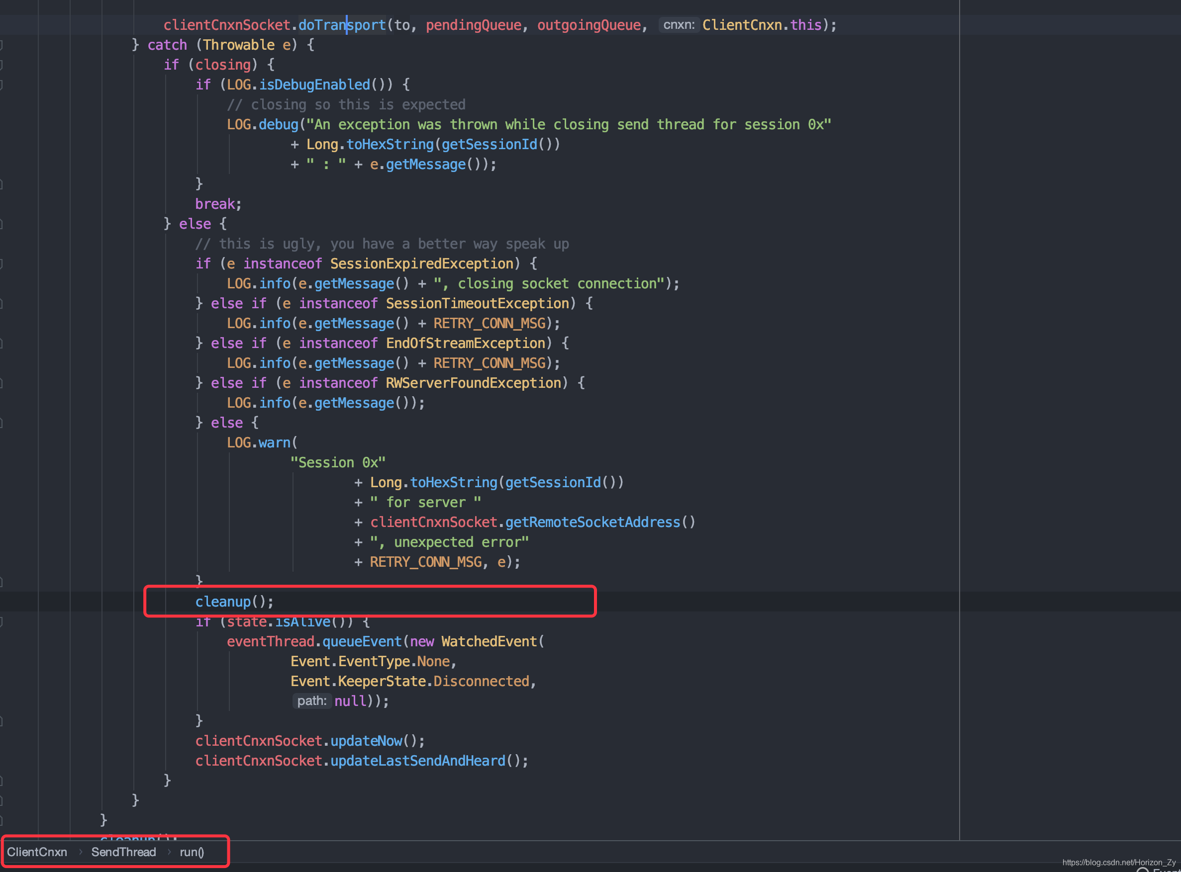 org.apache.zookeeper.ClientCnxn.SendThread#run