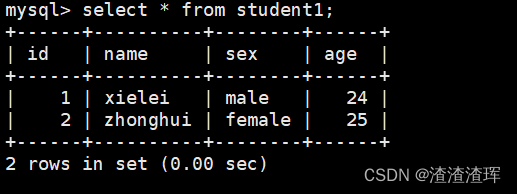 create table student1 (id int,name varchar(20),sex enum('m','f'),age int);
