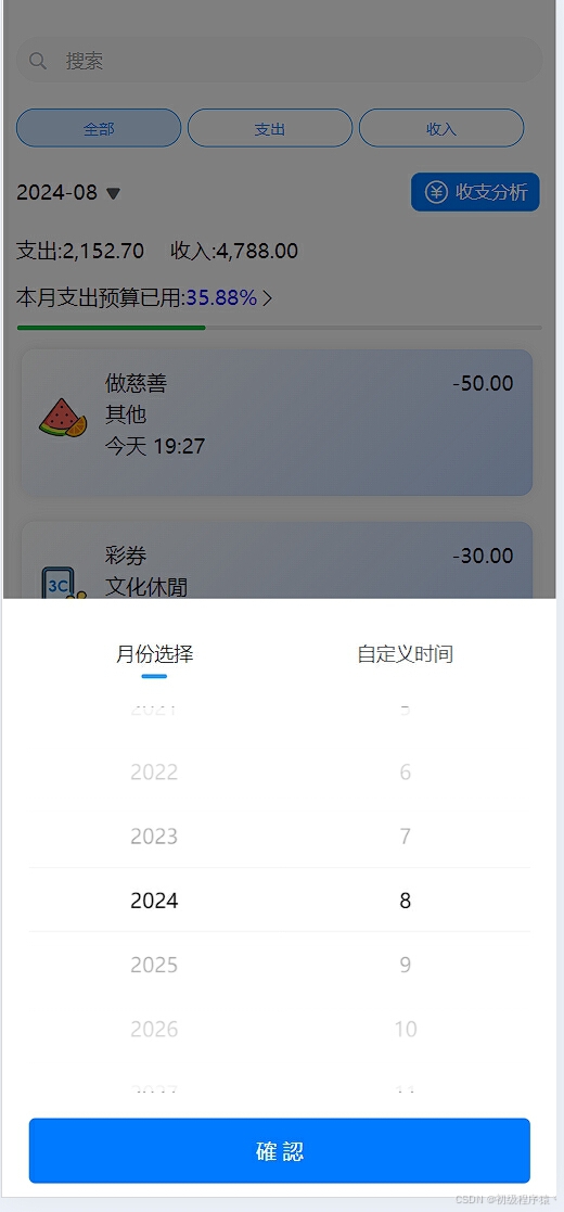 自己女朋友有记账的习惯,就想着开发一个记账app给她用,想起来支付宝的账单页面日期选择组件不错,本想偷个懒到网上找一些资源直接使用的,翻了一下代码都不是很全,索性就自己封装了一个,对应的uview依赖全局注册一下,代码就可以直接使用了。