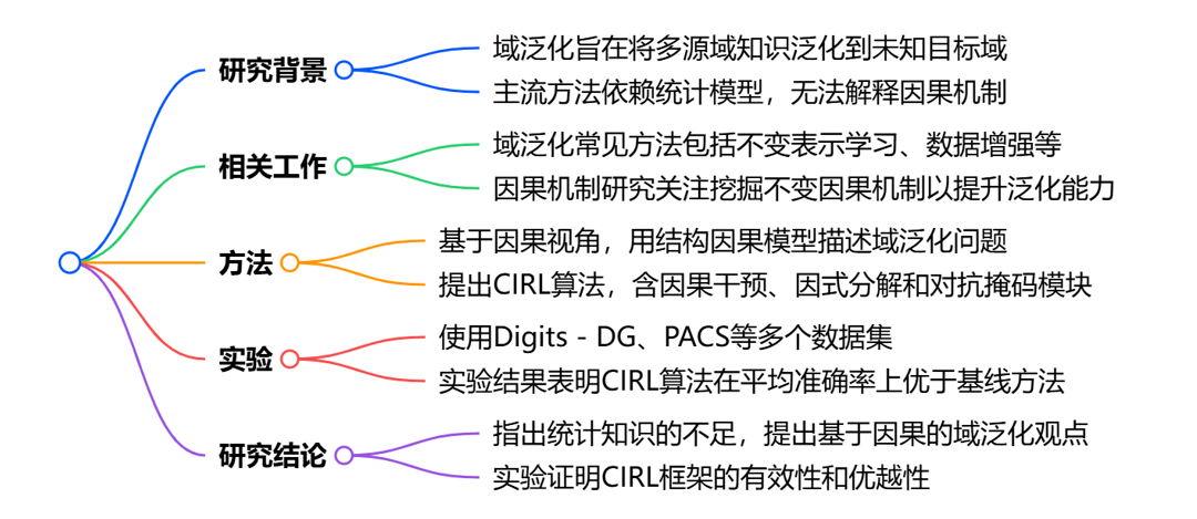 数据与标签的统计依赖可能包含大量域相关的非因果因素(如 “手写风格”“图像背景”),而真正决定标签的是因果因素(如 “形状”“语义特征”)。传统方法仅建模统计依赖,未分离因果与非因果因素,导致泛化时受域变化干扰。