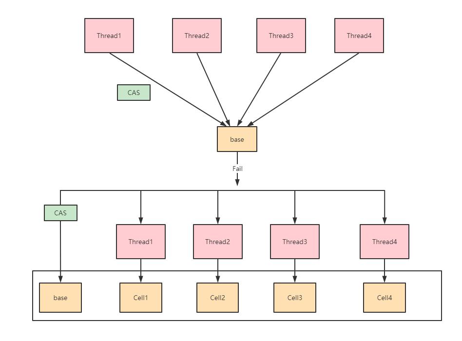 * 1. 没有遇到并发竞争时,直接使用base累加数值