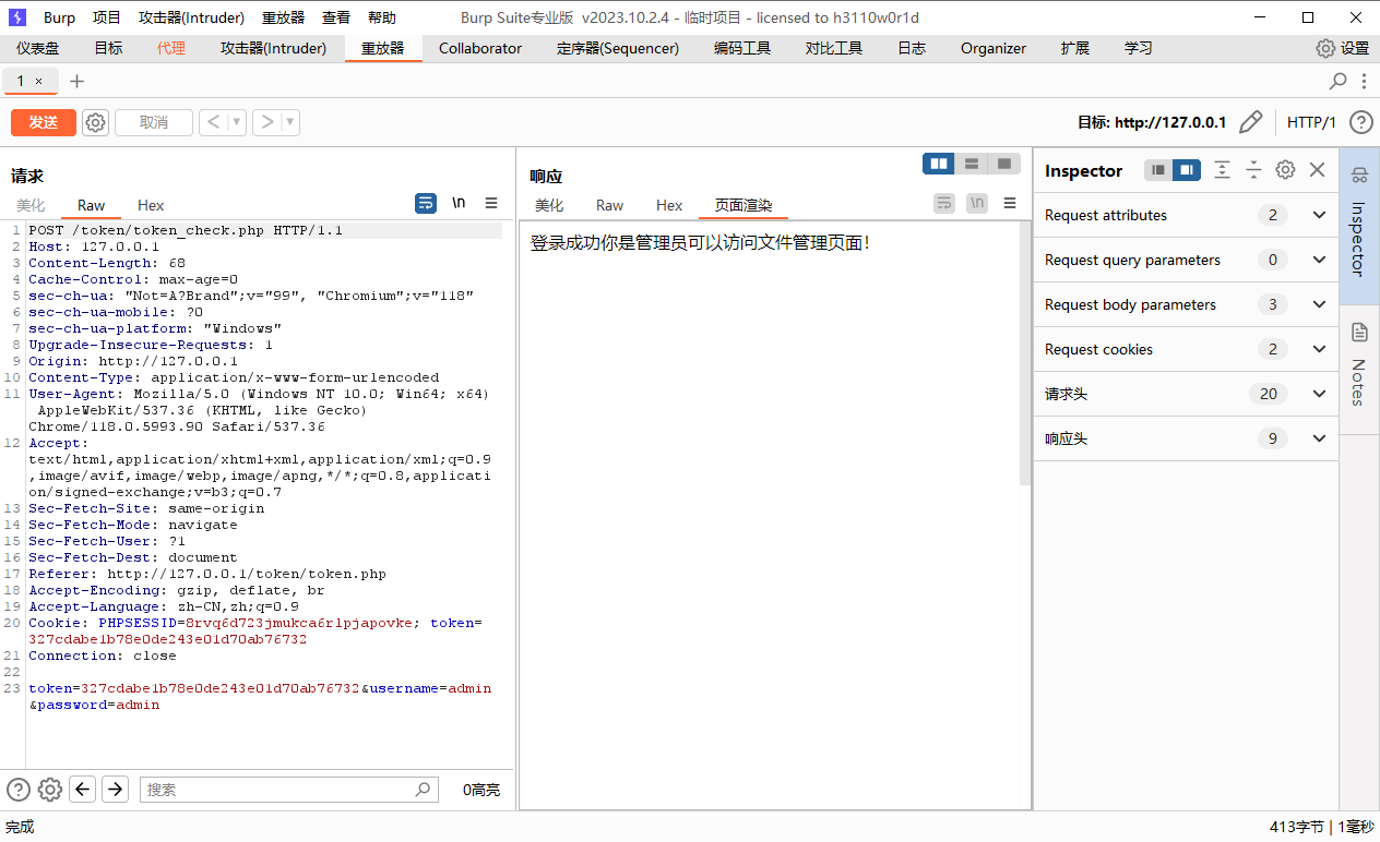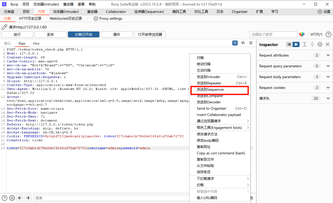 在浏览器中,每次登录的时候都会自动刷新token值,所以账号密码正确的话就可以直接登录上,但是在Burp中token值是一直不会发生变化的,所以账号密码都正确的时候,也无法登录成功