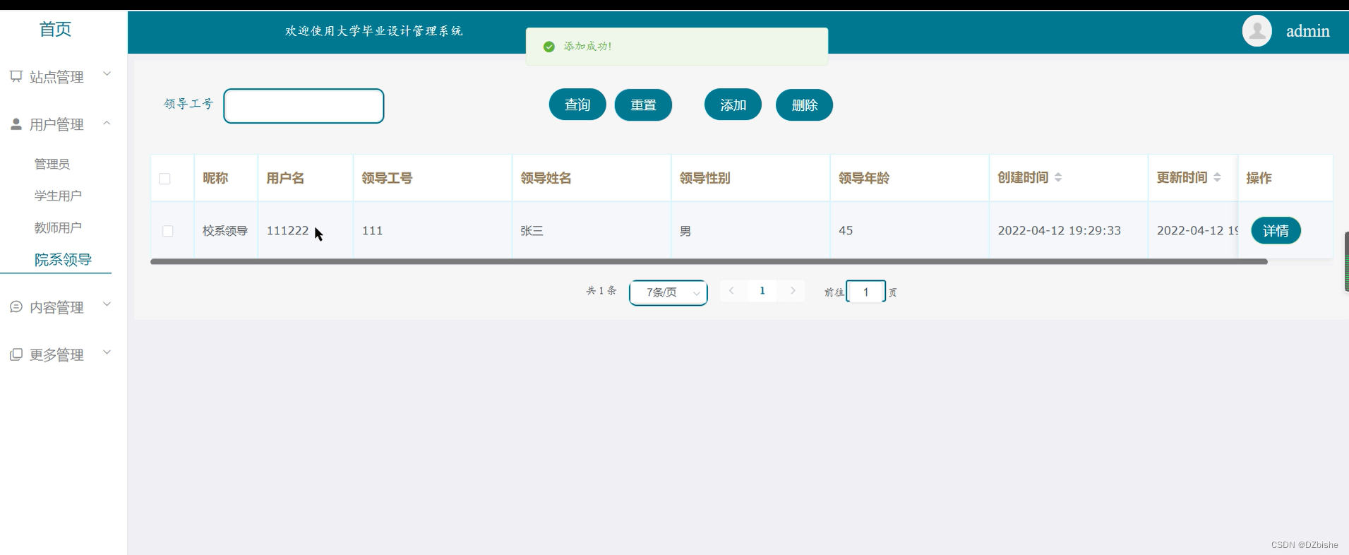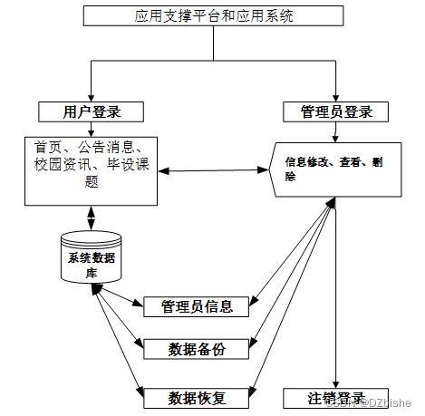 使用大学毕业设计管理系统的分为管理员和用户、两个权限模块。