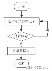 用户选择要删除的信息并单击Delete按钮。系统提示是否删除信息。如果用户想要删除信息,系统将删除信息。系统数据库删除信息。删除信息流程图如图3-5所示。