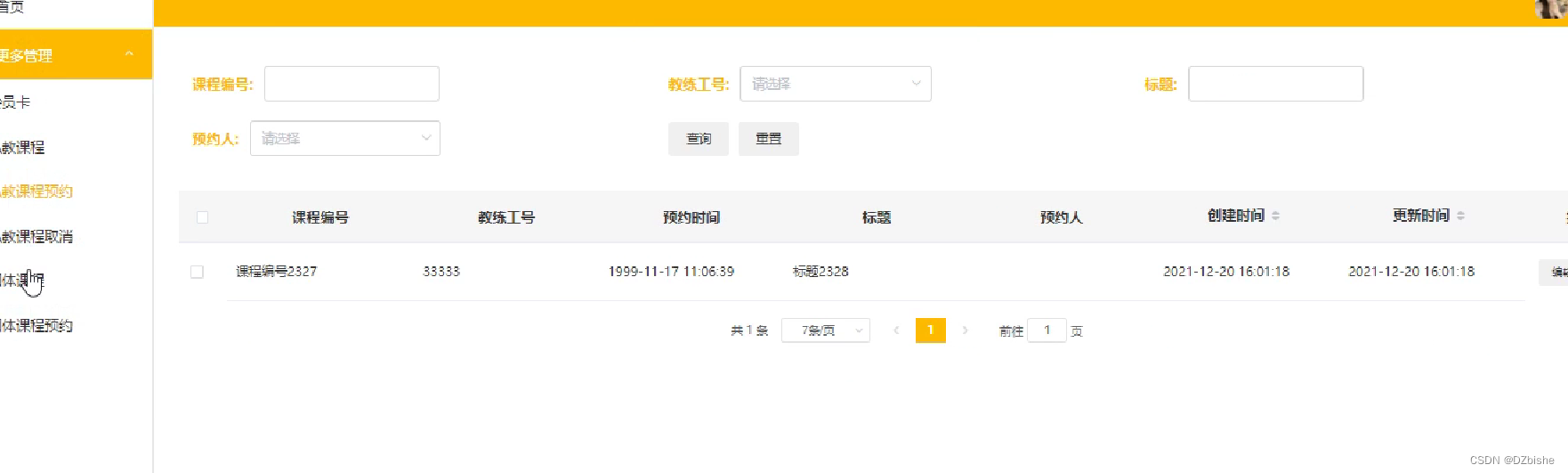 | 补充说明 | (a)课程预约表单数据不能为空 |