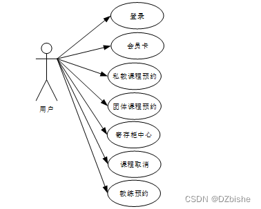 用户模块:健身资讯浏览、寄存柜租赁、私教课程预约、团队课程预约,课程取消。