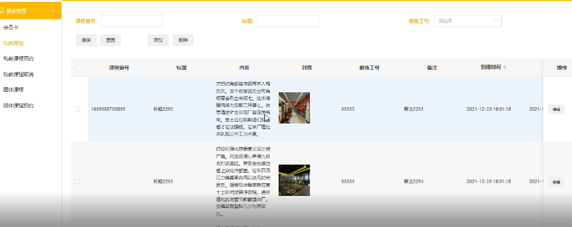 The system adopts the object-oriented development mode for software development and hardware erection, which can well meet the needs of actual use, improve the corresponding software erection and program coding, take MySQL as the main storage unit of background data, and use spring boot framework, JSP technology and Ajax technology for business system coding and development, All the functions of the system are realized. The gym management system solves the waste of human, material and time brought by the traditional management method and the limitation of communication depth, which makes the communication process faster, accurate and convenient. At the same time, it completes the basic functions of the gym management system: news data management, user registration management, message management, fitness course management, course reservation and group course reservation management.