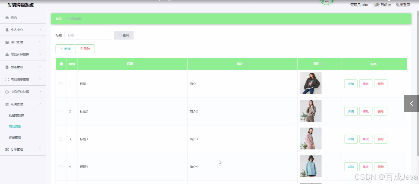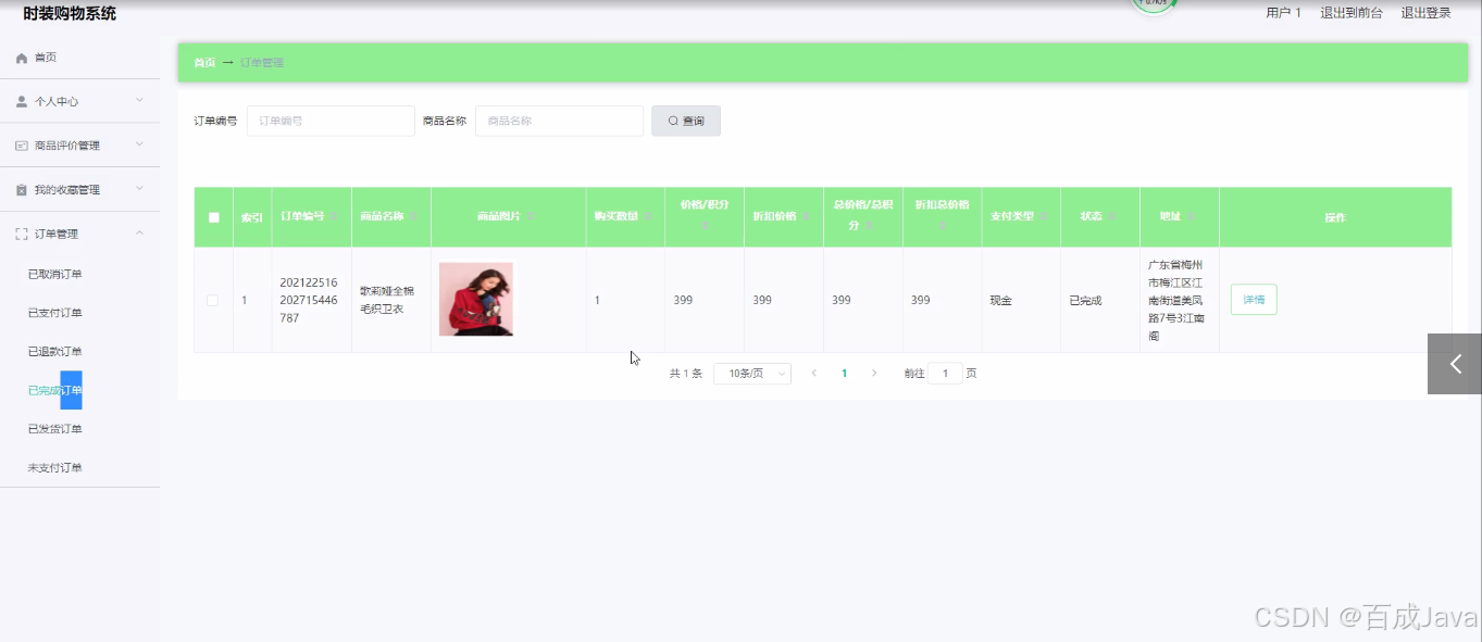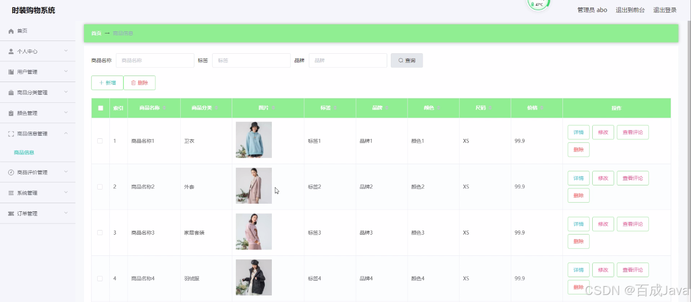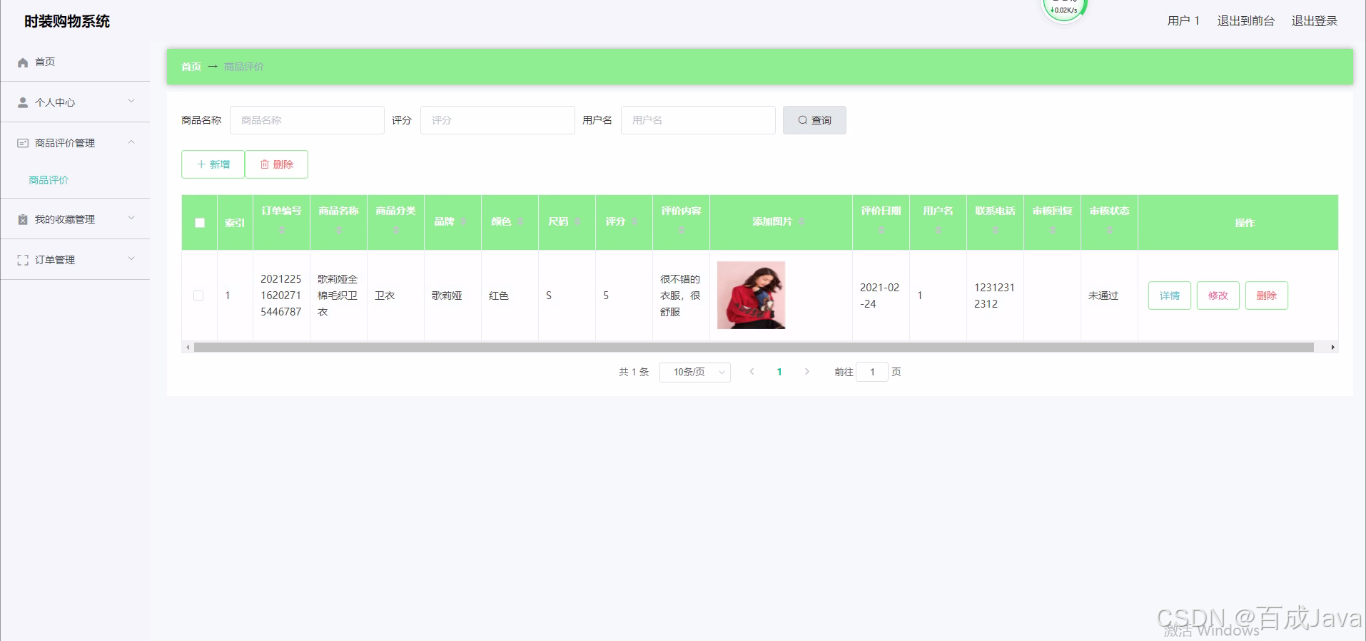 随着科学技术的飞速发展,社会的方方面面、各行各业都在努力与现代的先进技术接轨,通过科技手段来提高自身的优势,时装购物系统当然也不能排除在外。时装购物系统是以实际运用为开发背景,运用软件工程原理和开发方法,采用springboot框架构建的一个管理系统。整个开发过程首先对软件系统进行需求分析,得出系统的主要功能。接着对系统进行总体设计和详细设计。总体设计主要包括系统功能设计、系统总体结构设计、系统数据结构设计和系统安全设计等;详细设计主要包括系统数据库访问的实现,主要功能模块的具体实现,模块实现关键代码等。最后对系统进行功能测试,并对测试结果进行分析总结,得出系统中存在的不足及需要改进的地方,为以后的系统维护提供了方便,同时也为今后开发类似系统提供了借鉴和帮助。这种个性化的网上管理系统特别注重交互协调与管理的相互配合,激发了管理人员的创造性与主动性,对时装购物系统而言非常有利。