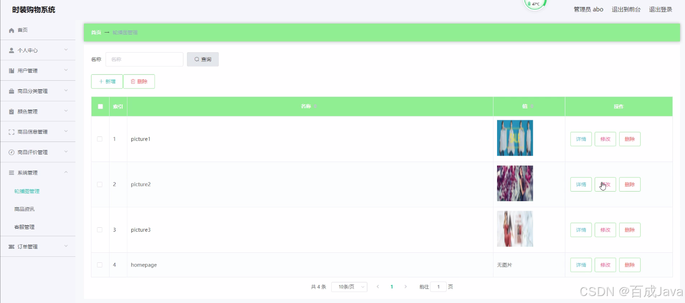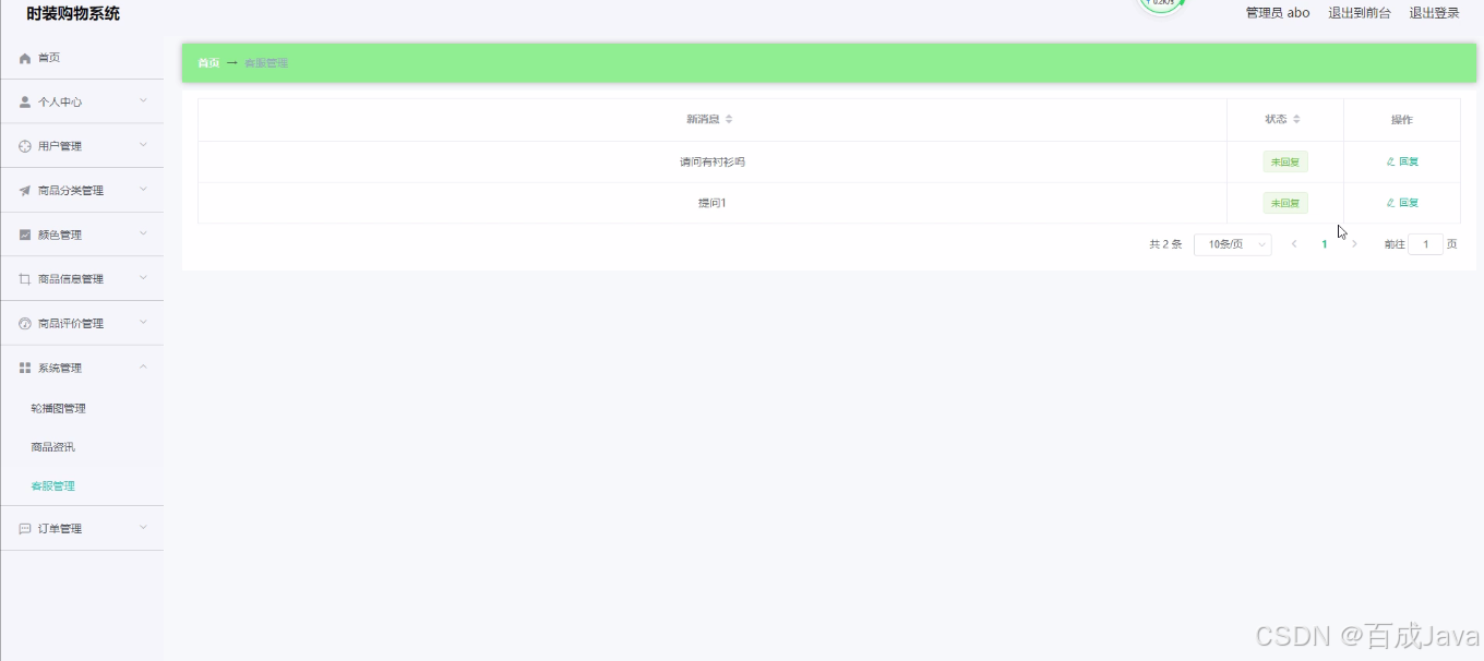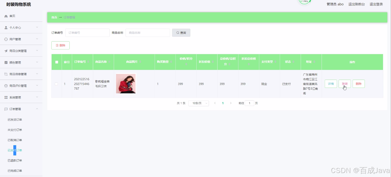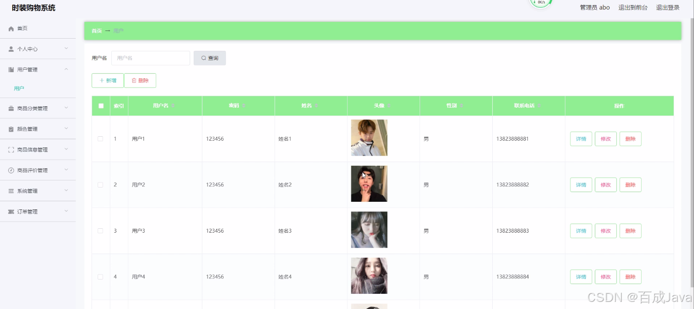 随着科学技术的飞速发展,社会的方方面面、各行各业都在努力与现代的先进技术接轨,通过科技手段来提高自身的优势,时装购物系统当然也不能排除在外。时装购物系统是以实际运用为开发背景,运用软件工程原理和开发方法,采用springboot框架构建的一个管理系统。整个开发过程首先对软件系统进行需求分析,得出系统的主要功能。接着对系统进行总体设计和详细设计。总体设计主要包括系统功能设计、系统总体结构设计、系统数据结构设计和系统安全设计等;详细设计主要包括系统数据库访问的实现,主要功能模块的具体实现,模块实现关键代码等。最后对系统进行功能测试,并对测试结果进行分析总结,得出系统中存在的不足及需要改进的地方,为以后的系统维护提供了方便,同时也为今后开发类似系统提供了借鉴和帮助。这种个性化的网上管理系统特别注重交互协调与管理的相互配合,激发了管理人员的创造性与主动性,对时装购物系统而言非常有利。