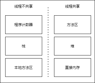 1、程序计数器:用于存储当前线程执行的字节码指令地址,这个区域是每个线程独有的,不共享。