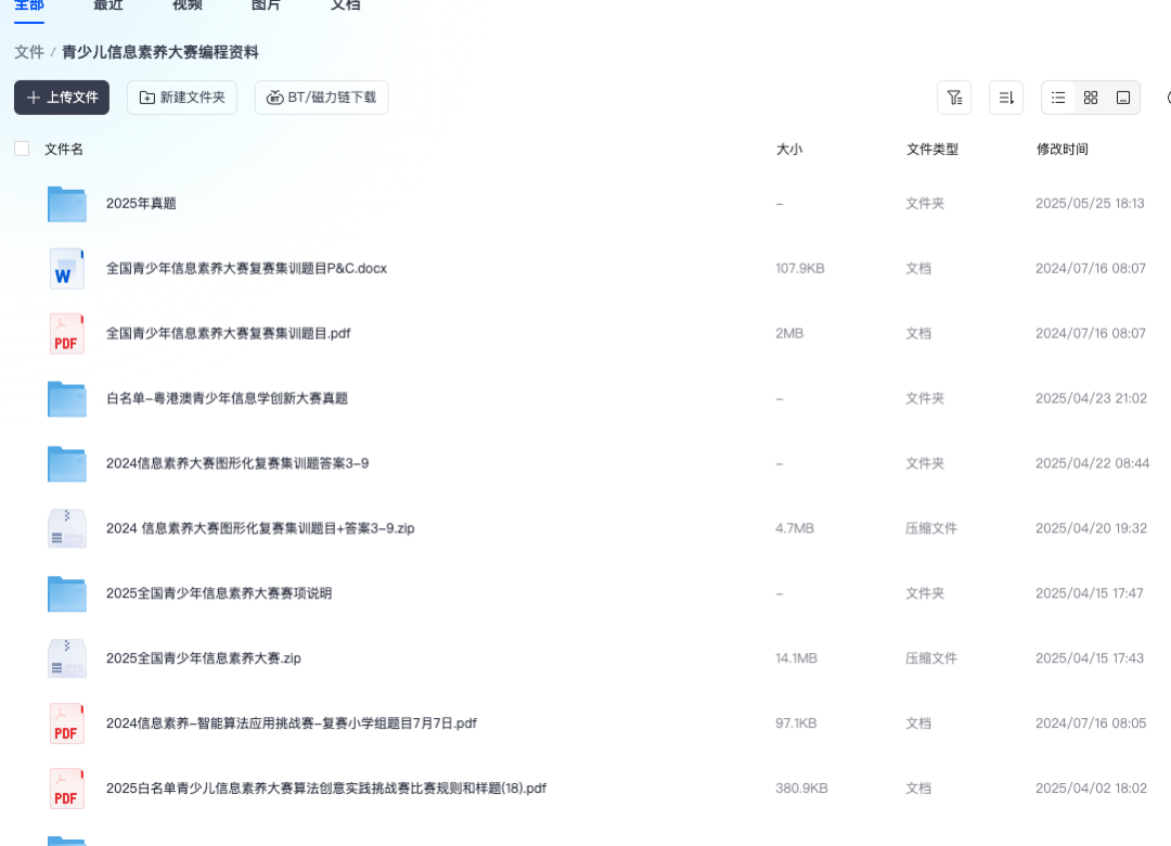 我用夸克网盘分享了「全国青少年信息素养大赛复赛集训题目Python&C++.docx」,点击链接即可保存。