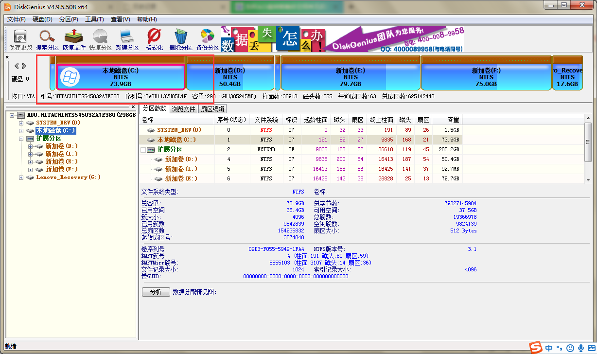 1使用过win7自带的分区,但貌似不好用,分区失败,需要相邻盘才可以。