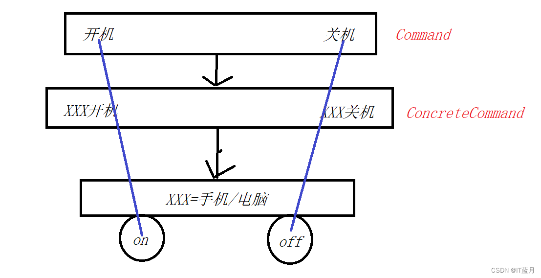 手机和电脑均支持开关机,而开机和关机就是两个命令;手机和电脑就是两个接收者;很多时候我们只需要知道如何发送请求,即我要发送关机的命令。但我不关心他如何关机