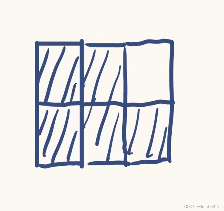 1情况是上一个画布下0情况家+2情况的和 (即上一个画布的0情况加一个L型可满足,或上一个画布的2情况加一个横I型亦可满足)用来存储n长度画布的4种情况的可能的构成次数(即情况0123 为索引,所存的数为可能出现的构成的次数)0情况就是上一个画布下3情况的可能(毕竟多加一列画布,前面是满的,后面多一列空白就满足了0情况)一格画布只能出现情况3或0,12无法出现,所以将n=1时进行赋值。情况3(=上一个画布的情况0+情况1+情况2+情况3(如下图))注意情况0的I型只能横放,否则与情况3重复。