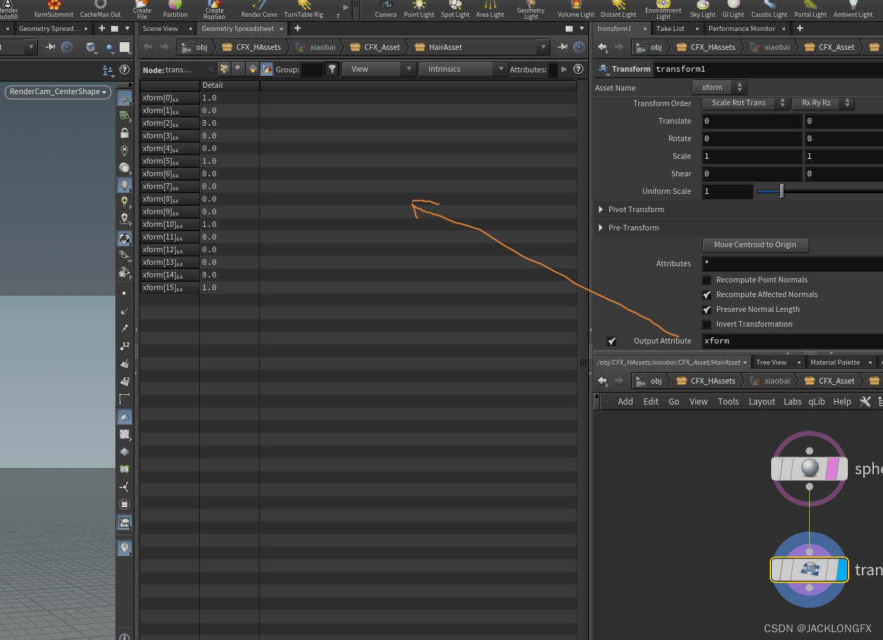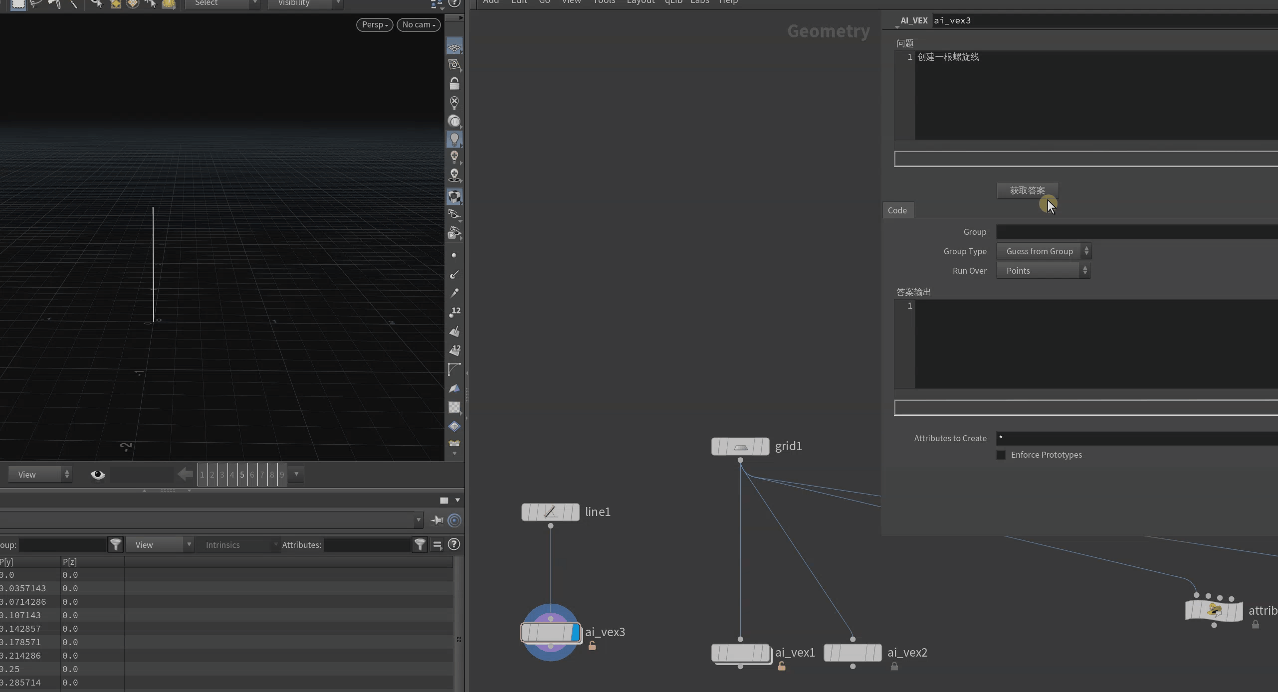 如何创建属性:setprimattrib(0,‘name’,‘value’) 注:int addprimattrib(int。geohandle, string name, defvalue) 如果创建失败返回-1。分析. 可以简单理解为2步 >>>>>>1.创建约束线>>>>>>2.添加各种力.细节补 :我们这些只要一次 所以运行在detail 层级.(具体每个属性对应的作用可以看前几篇,不累赘)我们先看看,自带的有哪些力.一. 关于自定义约束线。