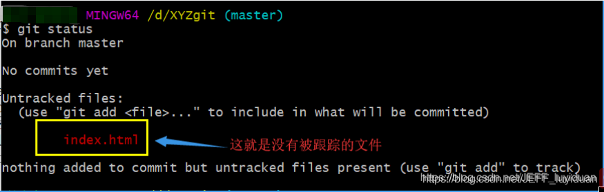 git status:查询当前文件夹的状态,就可以知道有那些文件没有被跟踪
