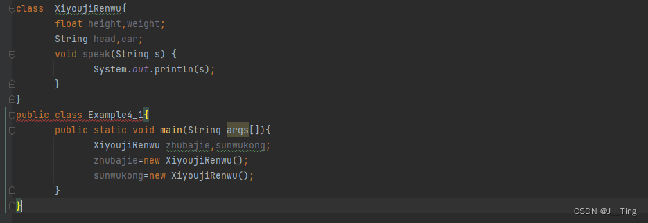 XiyoujiRenwu zhubajie = null,sunwukong =null; //声明对象