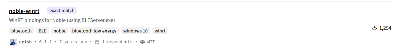 ✨ "noble-winrt": "^0.1.1"开发(较老旧且无人维护,npm及github无api),仅支持win10/win11系统,无需安装其他编译插件(后续会再出一个基于noble需要插件编译,不需要安装驱动的跨平台支持macOS,win,linux的demo)