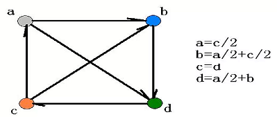 ①在一个由“引用”或者“推荐”关系构成的信息网络中,每个节点的重要性可以认为取决于有多少人推荐,以及推荐人的重要性。②这种重要性可以通过“PageRank算法”得到量化。③PageRank算法的基本精神是基于信息网络的结构,让每个节点不断把自己的重要性非给出向邻居,同时用从入向邻居收到的重要性之和来更新自己。④例如要测量社交网络中一个人的影响力和可信度,可以用PageRank算法来计算