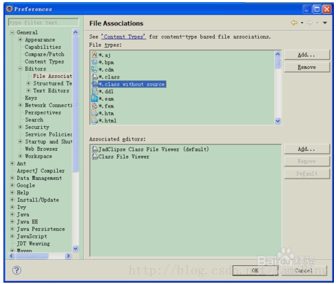 8、然后,设置*.class without source文件类型打开方式 ,如图所示: 注意:此处的设置default