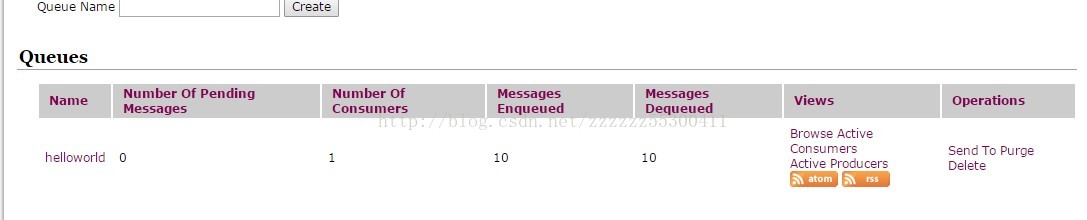 运行完后active mq控制台会显示出创建的Queue"helloworld"