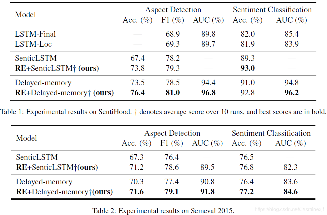 从表中结果可以看出,本文提出的优化目标和方面向量表示的方法在目标识别和情感分类任务中都取得了更好的表现,这说明了上下文相关的目标和方面表示能提升模型在细粒度情感分析任务中的效果。同时我们可以发现本文提出的目标-方面向量表示可以适用于大部分基于深度学习的目标-方面文本情感分类模型.