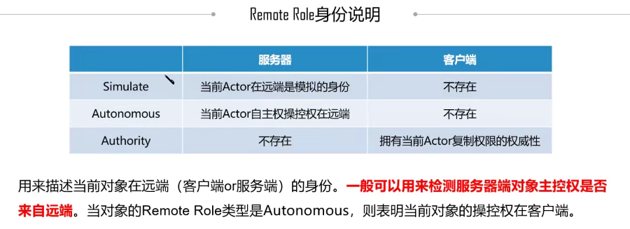- RemoteRole:用来裁定当前Actor在远端的身份