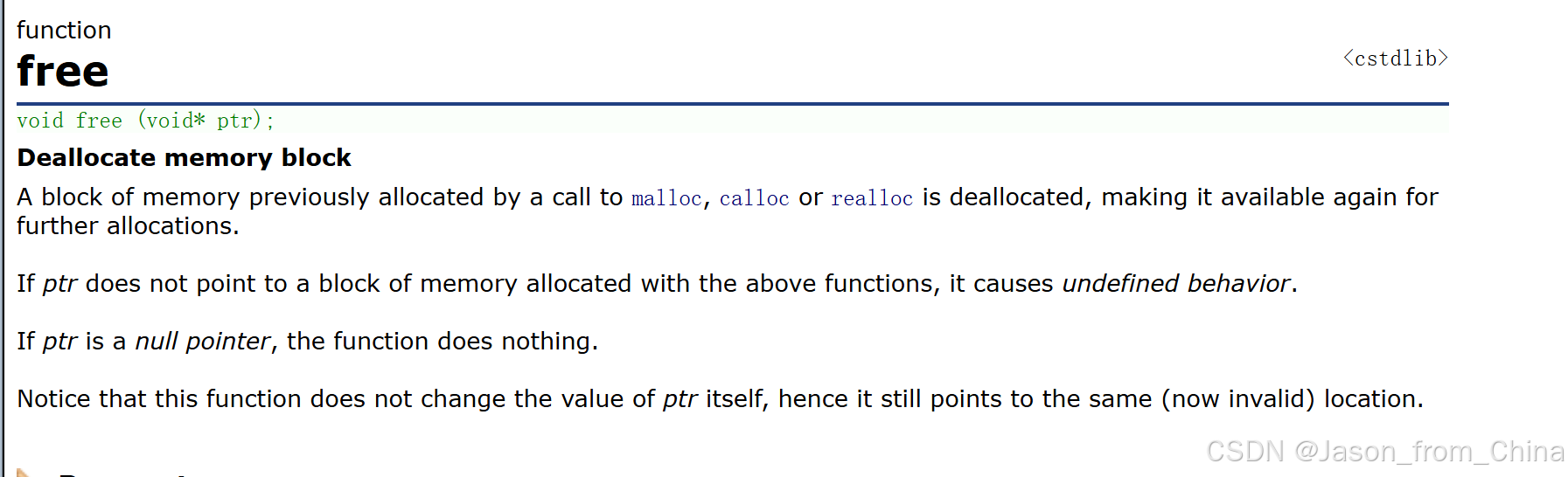 free(void *ptr),下面我会进行讲解- 从C语言的文档里面我们可以看见,头文件cstdlib