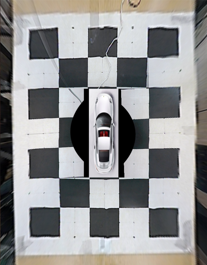 图像拼接: 依据预先标定的位置关系,将四张鸟瞰图无缝合成为一张完整的360°全景俯视图。