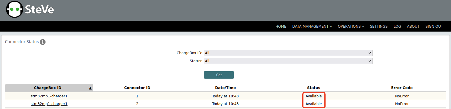 [MO] info (MicroOcppMongooseClient.cpp:711): connection ws://192.168.40.187:8180/steve/websocket/CentralSystemService/stm32mp1-charger1 -- connected!