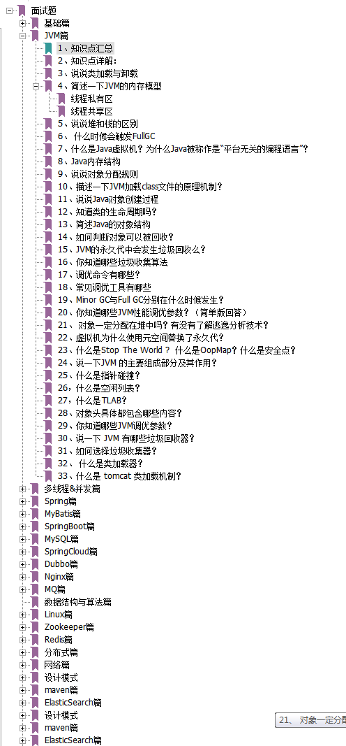 爆了,爆了!阿里 P9 纯手打 Java 面试小抄(21 版)在 GitHub 上已获 80 万 star 每年的年初各个公司都会走一批人,同时也会进一批人,行业里一直有句话就是金三银四到了这个春暖花开的季节,也就到了跳槽的季节雇主和雇员进行新一轮的互相匹配组合。程序员是高薪工作,但是如果不在制度完整大厂工作的话,从实习生再到能资深程序员薪资涨幅顶天也就是 20%左右,同时单个公司所用到的技术也就那几个,不利于程序员后续的成长发展;真正优秀的人都是把目标分段实现的。今天给大家分享的是阿里 P9 纯手打的 java 面试小抄,全篇超过 10W 字,总结的内容都是近两年出现最高频次的面试题与最优解,精心学习之