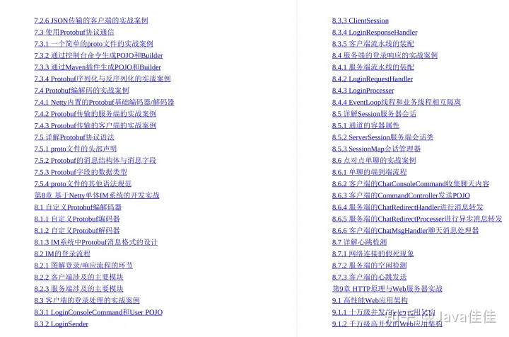 第5~8章重点讲解Netty。目前Netty是高性能通信框架皇冠上当之无愧的明珠,是支撑其他众多著名的高并发、分布式、大数据框架底层的框架。这几章从Reactor模式入手,以“四两拨千斤”的方式为大家介绍Netty原理。同时,还将介绍如何通过Netty来解决网络编程中的重点难题,如Protobuf序列化问题、半包问题等。