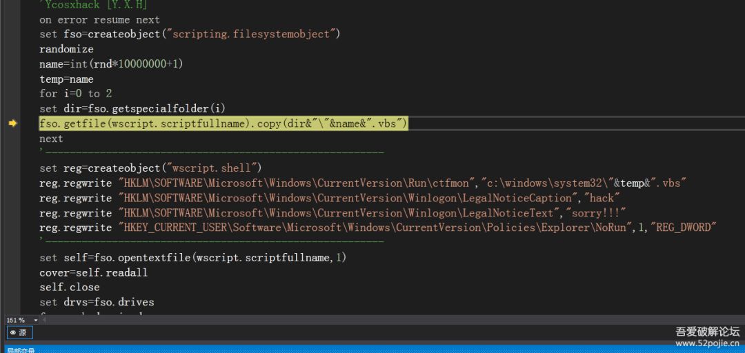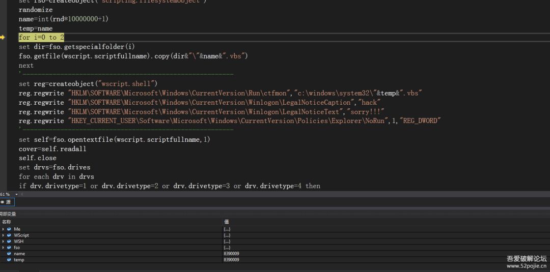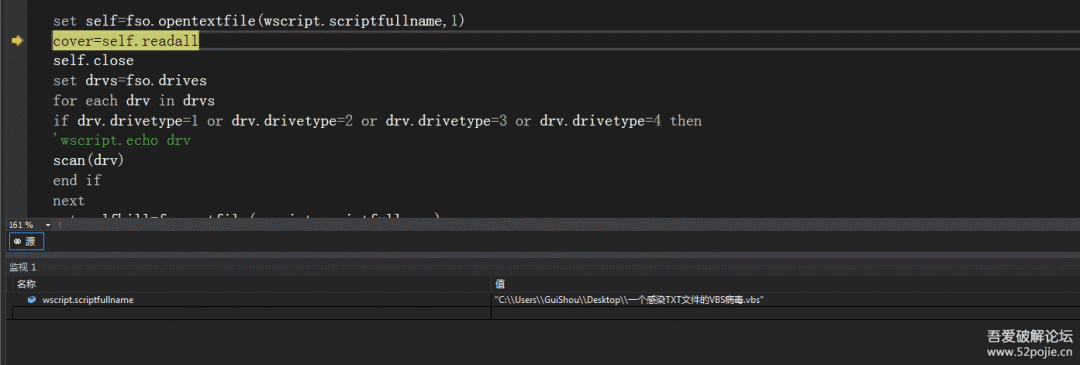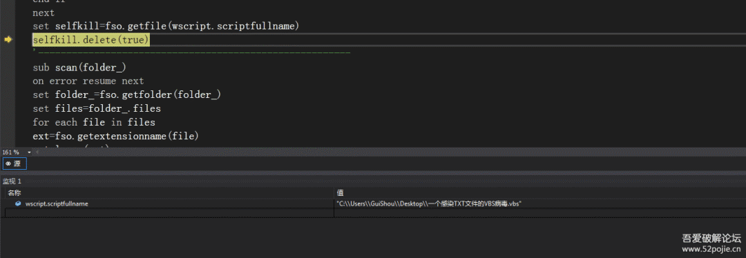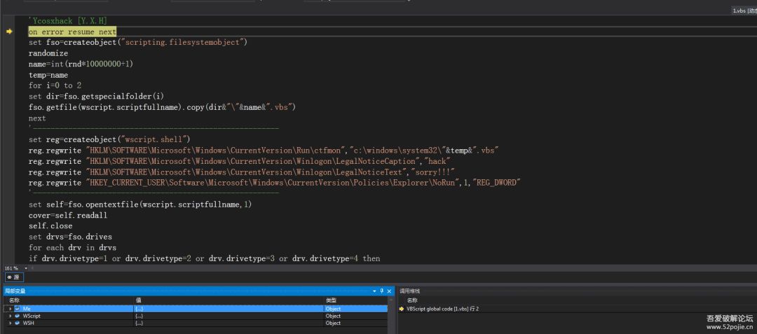 vbs类的病毒如何动态调试是个很大的问题,微软的地表最强IDE Visual Studio就能做到这一点。
