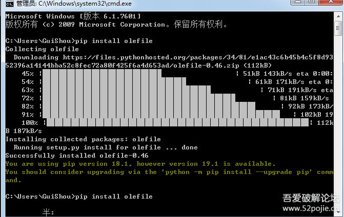 后面的网址是豆瓣的镜像源,由于这个模块关联的python模块较多,使用这个镜像源会比正常安装模块要安全,看到下面的提示代表安装成功。