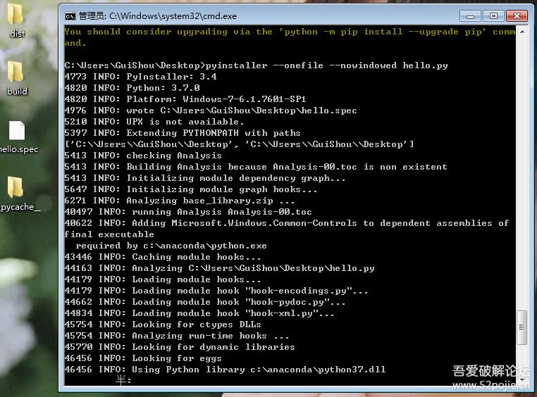 对于python打包的exe,如何反编译得到源码成了最关键的问题。那么我们首先来将一个py文件打包成exe,了解一下这个过程和python打包的exe的特征
