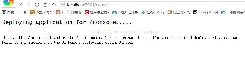 我们在网页浏览器中输入"http://localhost:7001/console"地址, 就可以访问WebLogic的控制台了: