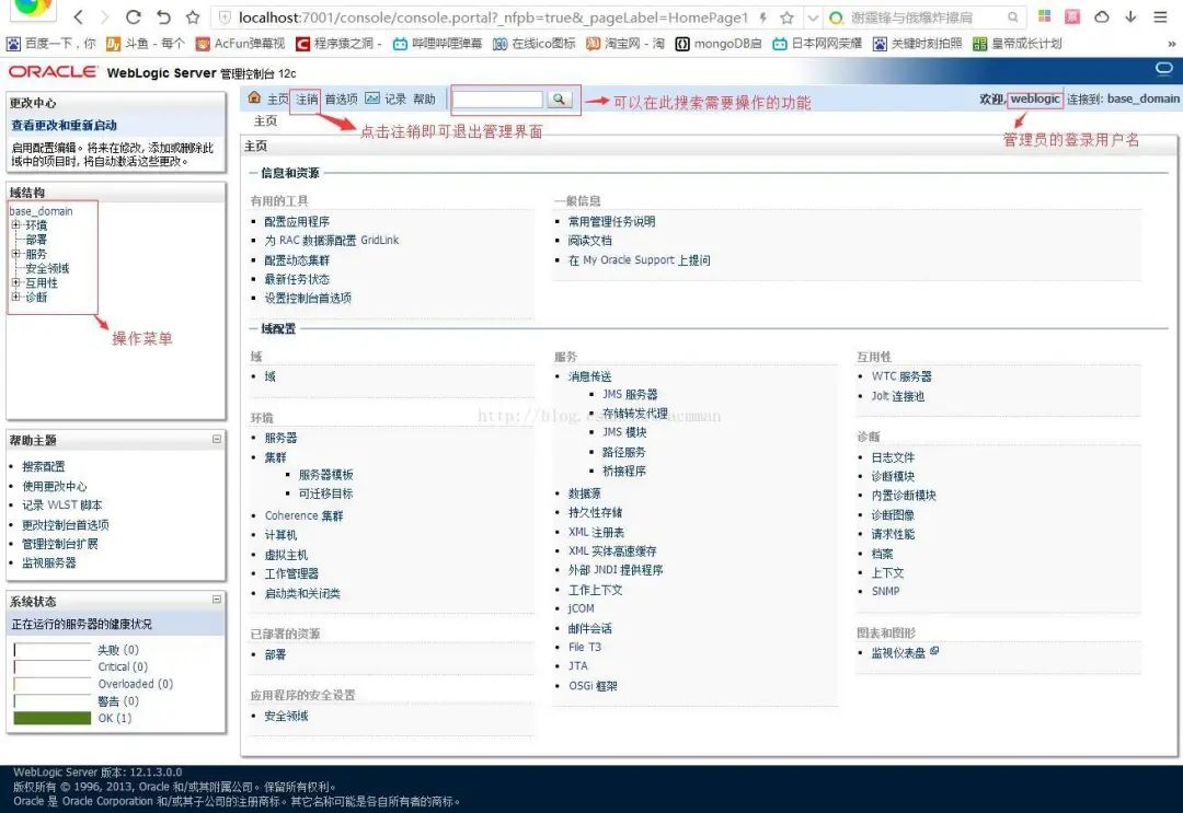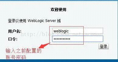 输入我们之前填写的管理员的账号密码,登录到WebLogic管理系统中: