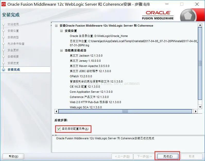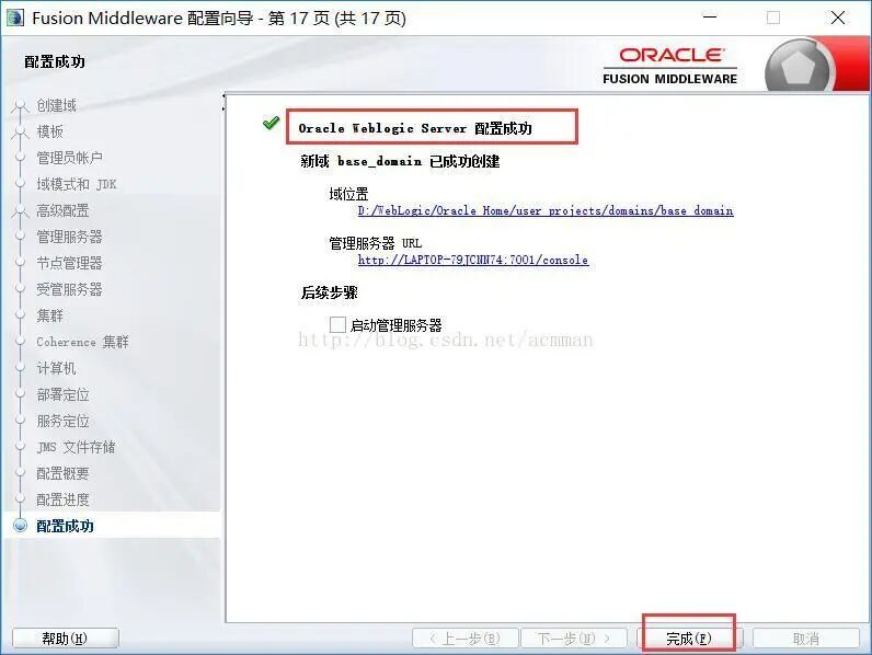 看到完成界面,就说明我们的WebLogic的安装与配置都已经完成了。